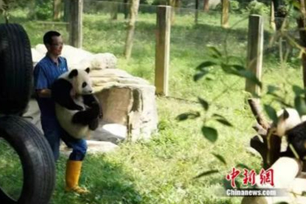Zhang and Xin Xing first met in 1992, when Xin Xing gave birth during an unusually hot summer. Since there was no air conditioner in the zoo at the time, Zhang was employed by Chongqing Zoo to carry ice blocks to the giant panda house for the whole summer.