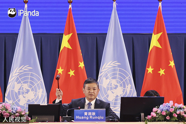 Huang Runqiu, Chinese Minister of Ecology and Environment and COP15 President, said global environmental governance is facing unprecedented challenges and the international community must work together to strengthen cooperation on the construction of global ecological civilization and biodiversity conservation in order to achieve sustainable world development and all-round human development.