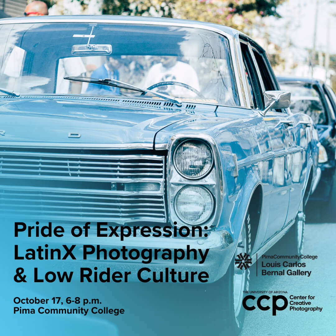Pima Community College (PCC) and the Center for Creative Photography (CCP) present “Pride of Expression: LatinX Photography and Low Rider Culture,” sponsored by Bank of America. Join us for a talk by Nadiah Rivera Fellah, Associate Curator of Contemporary Art at the Cleveland Museum of Art, who will delve into LatinX photography. The event will also feature a special display of low riders from Tucson’s “Sophisticated Few Car Club.”