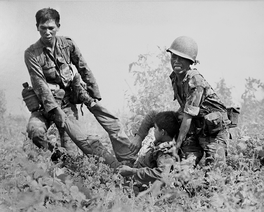 David Hume Kennerly, Vietnamese Soldiers Carrying Wounded Soldier from Battle Field near Tay Ninh, South Vietnam, 1971. © Bettmann/Getty Images