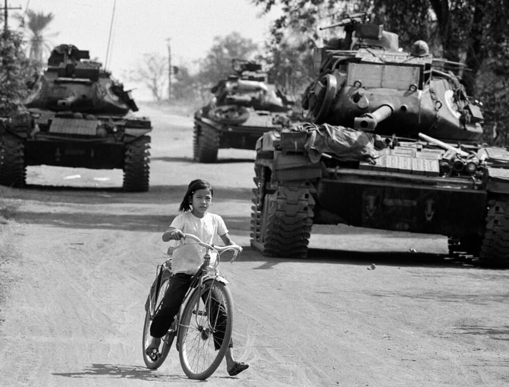 David Hume Kennerly. Refugees Escaping with U.S. Military Tanks on Road, Lai Khe, South Vietnam, 1973