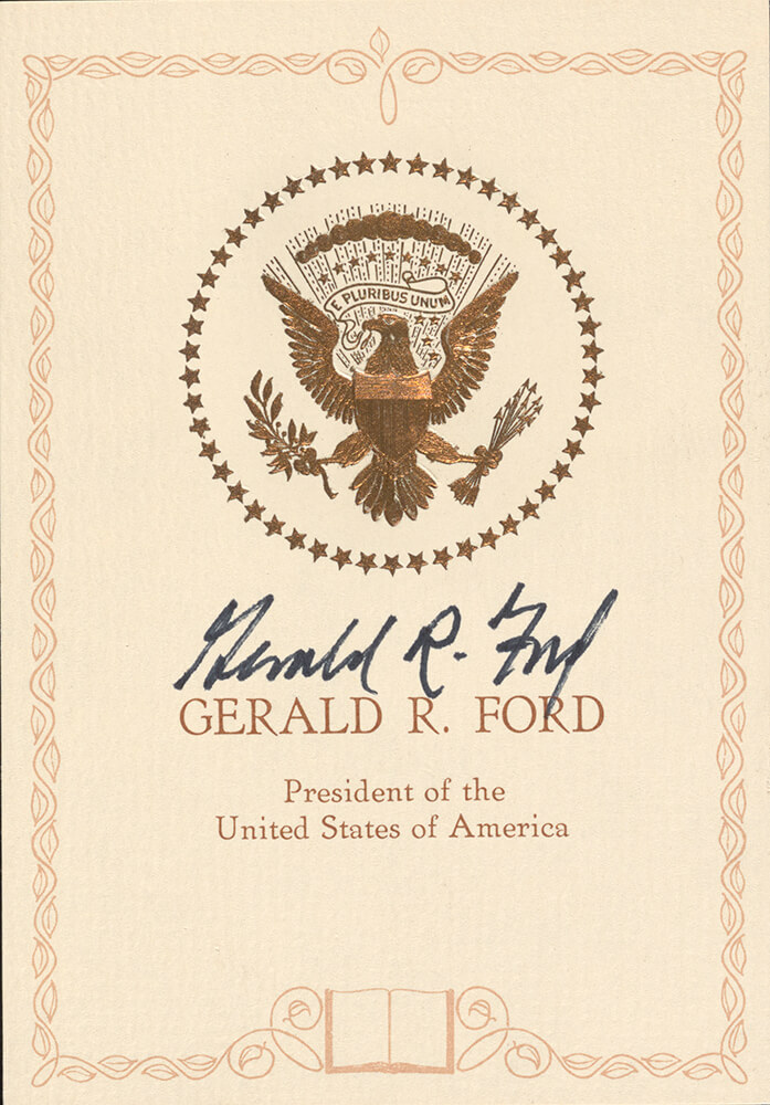 An invitation to the Laying of Tribute Wreaths on behalf of President George Bush at the Gerald R. Ford Presidential Museum, Grand Rapids, Michigan, 2008