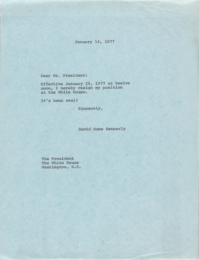 David Hume Kennerly's White House resignation letter, January 14, 1977