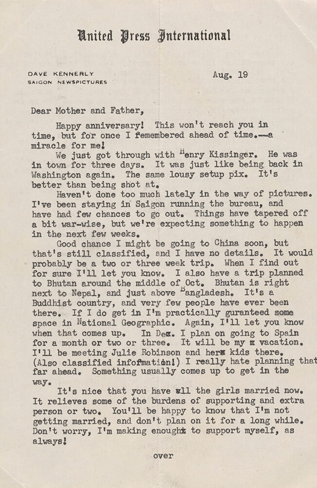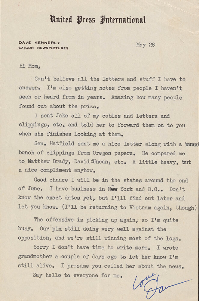 Letter from David Hume Kennerly to his mother, Joanne, May 28, 1972