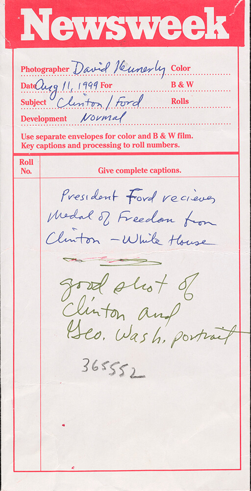David Hume Kennerly, President Ford Receives Medal of Freedom from Clinton White House, for Newsweek, August 11, 1999 (image 3 of 5)