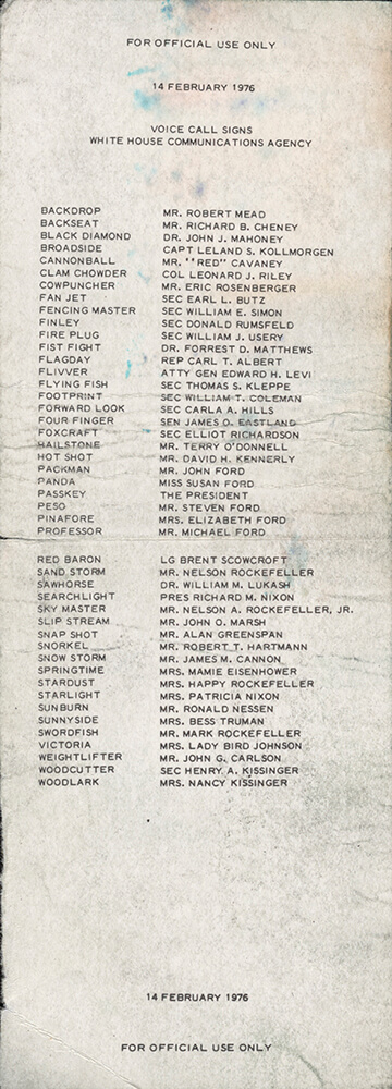 White House Communications Agency voice call signs, February, 1976 (image 1 of 2)